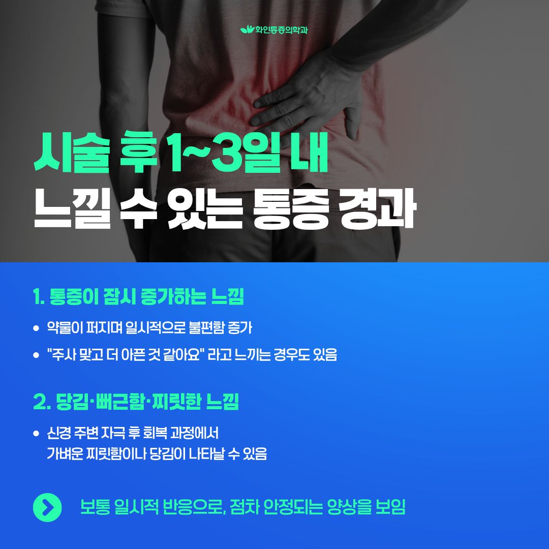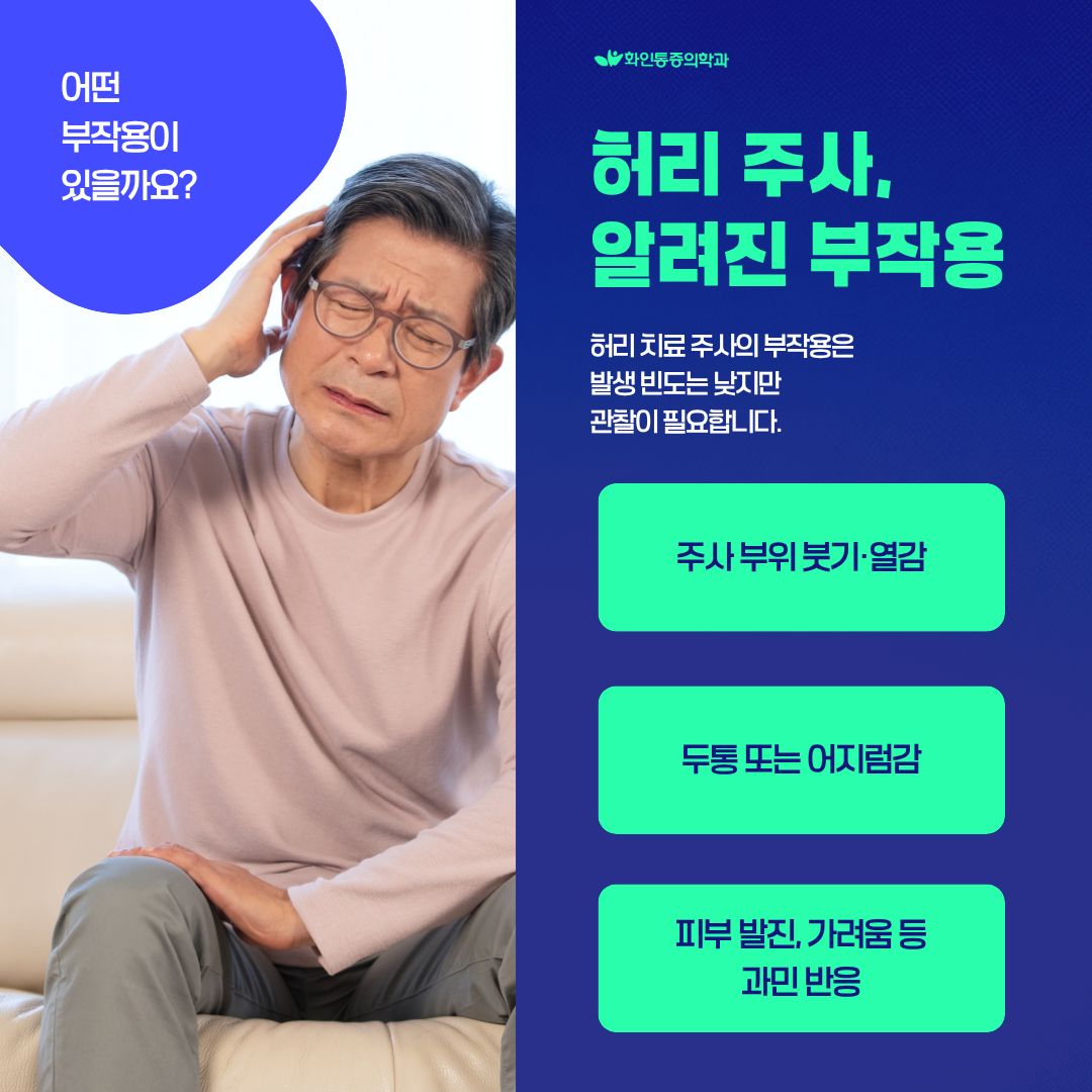 | 통증의학과 허리 주사 후 생길 수 있는 통증 반응과 부작용, 관리법 |
